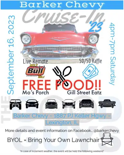 The 2nd Annual Barker Chevy Cruise-In is on Sept 16, 2023-- and 107.7 & 92.1 The Bull will be there!
